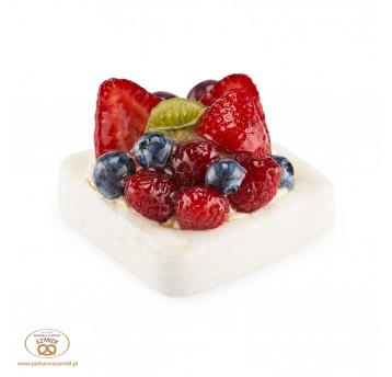 CIASTKO Z OWOCAMI NA BEZOWYM KORPUSIE