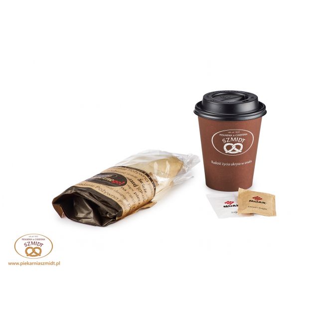 Zestaw dla 1 osoby składający się z tortilli i kawy białej lub czarnej z dodatkiem cukru białego lub brązowego (2 saszetki)