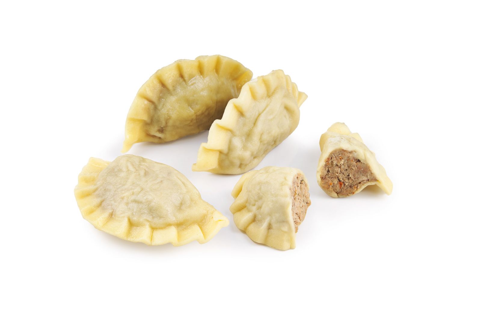 Klasyczne danie obiadowe wykonane według domowej receptury. Pierogi z mięsem to cienkie ciasto pszenne z nadzieniem mięsnym wysokiej jakości.