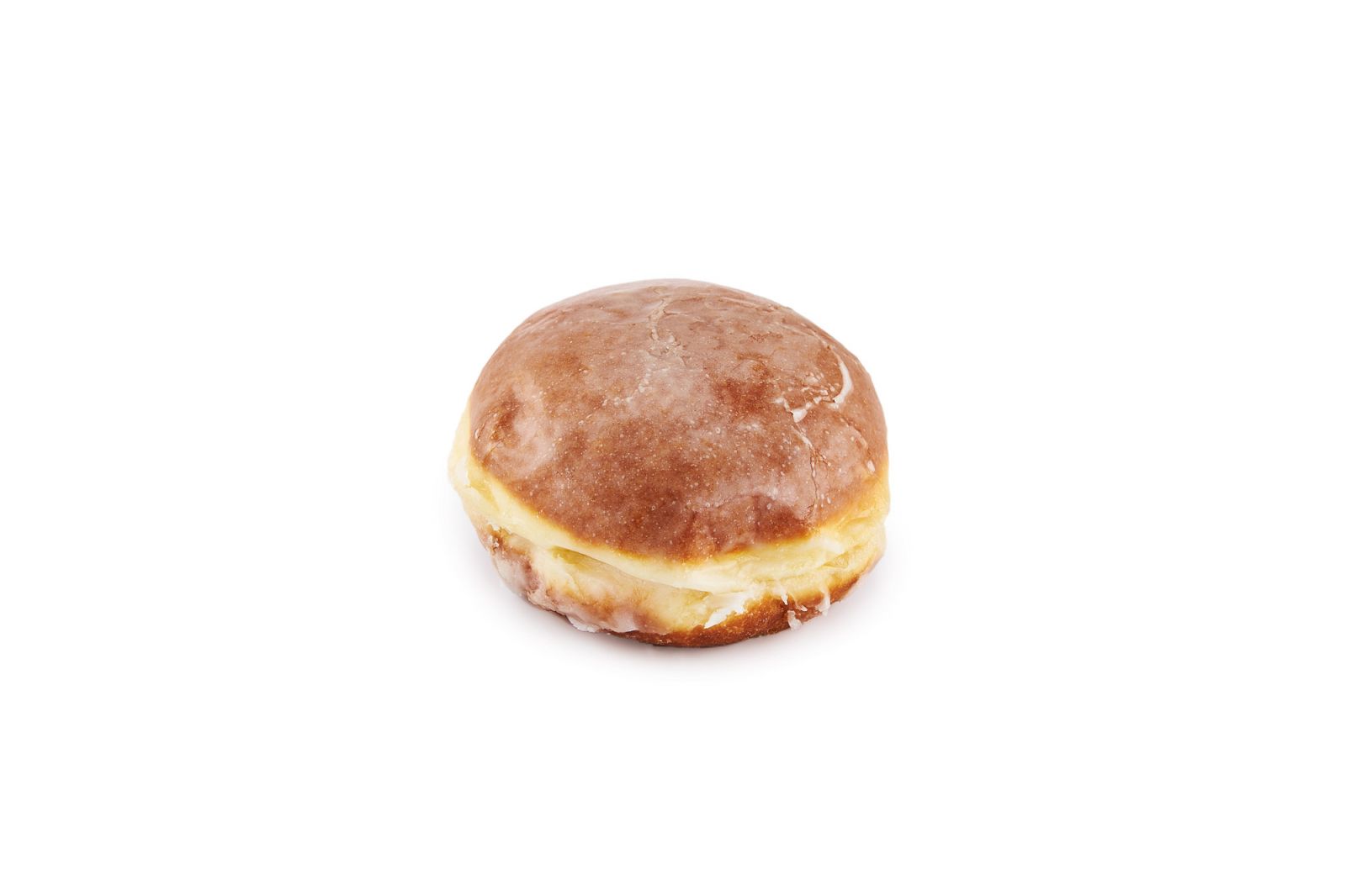 Tradycyjny pączek z marmoladą wieloowocową, oblany lukrem.