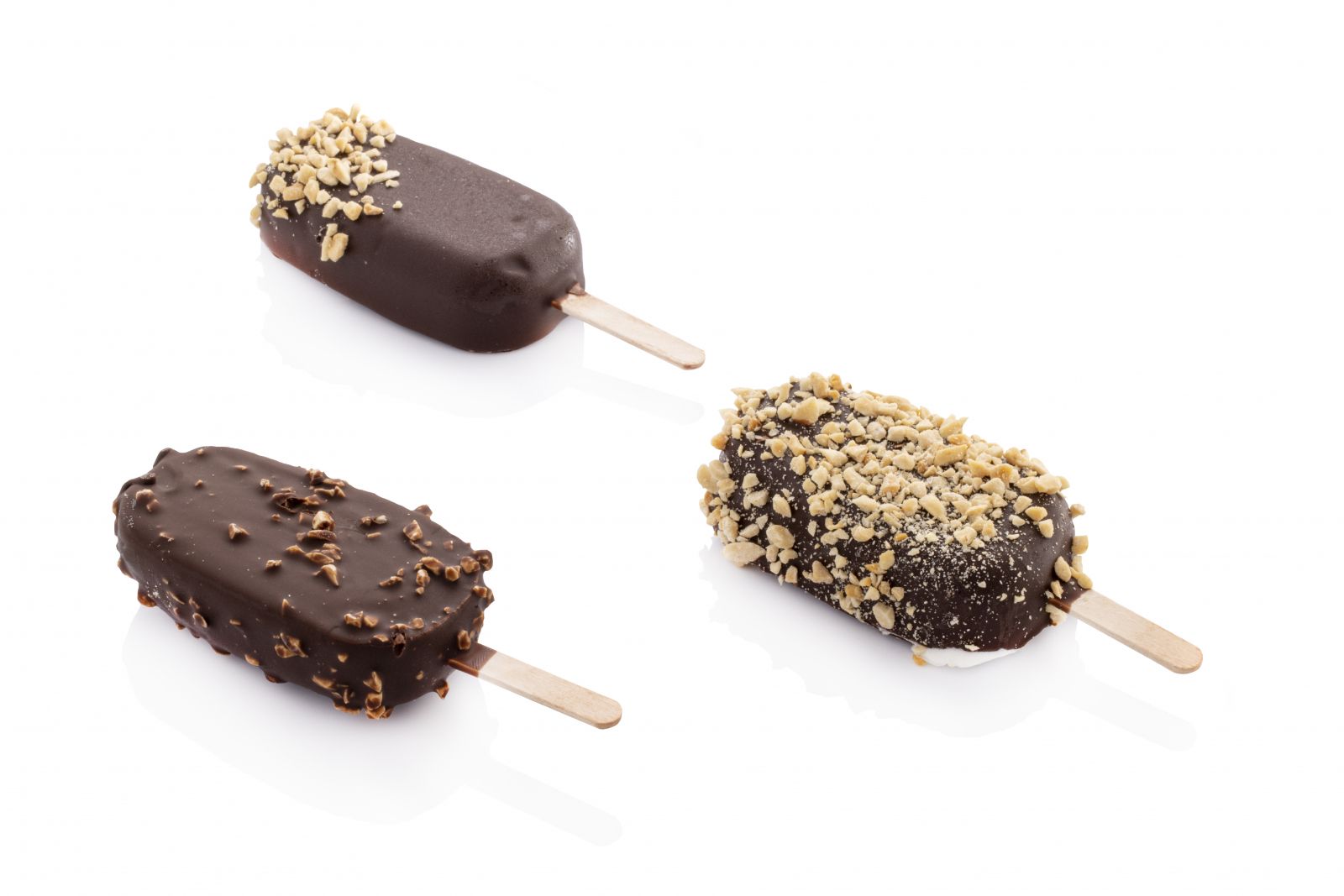 Lody rzemieślnicze na patyku. Smak wg zamówienia lub dostępności śmietankowy, czekoladowy, truskawkowy. 70g/szt.