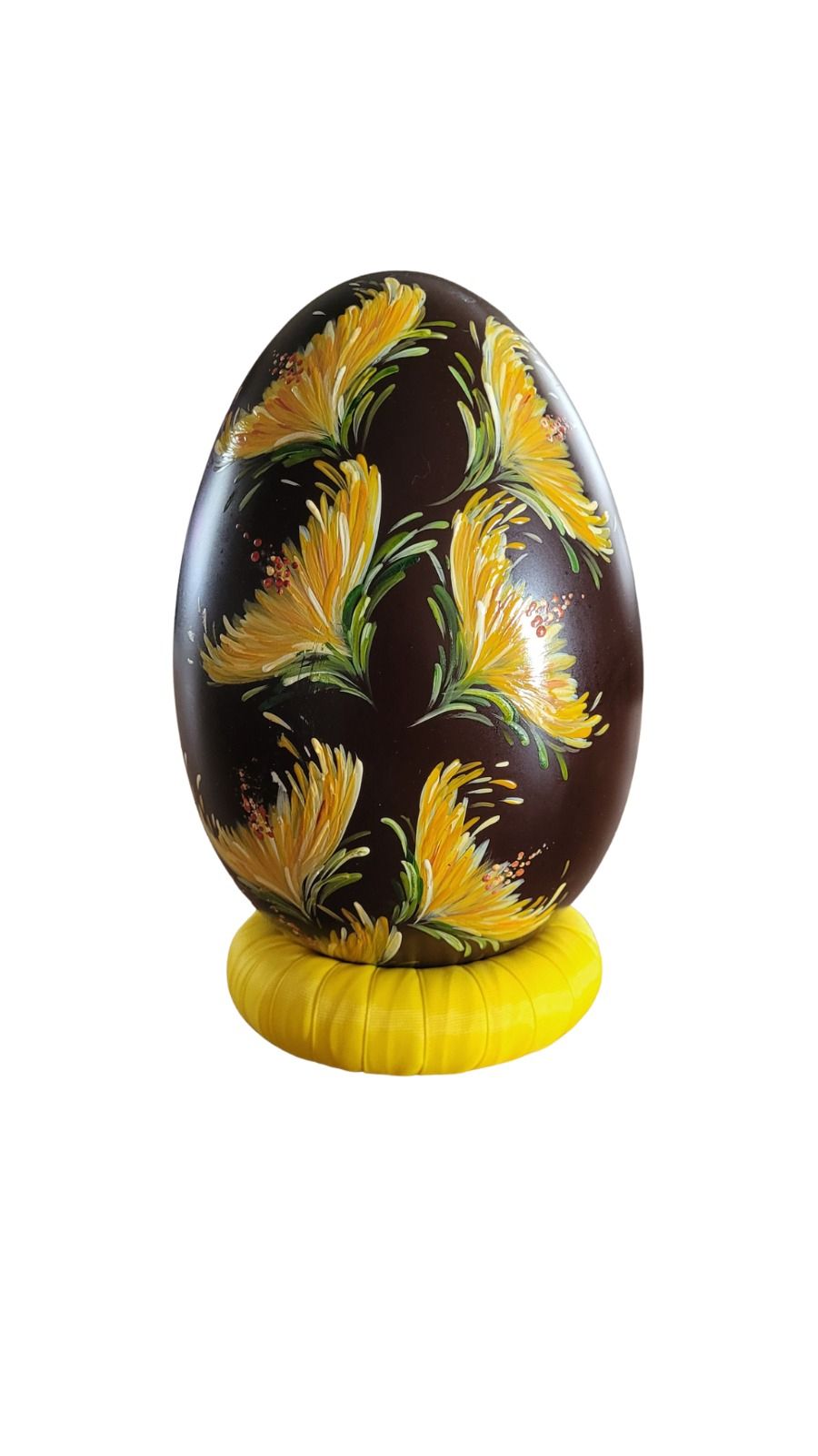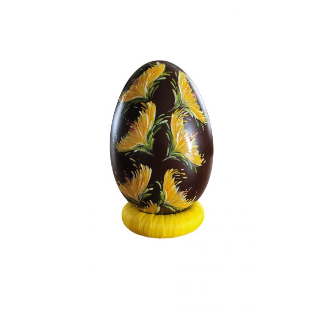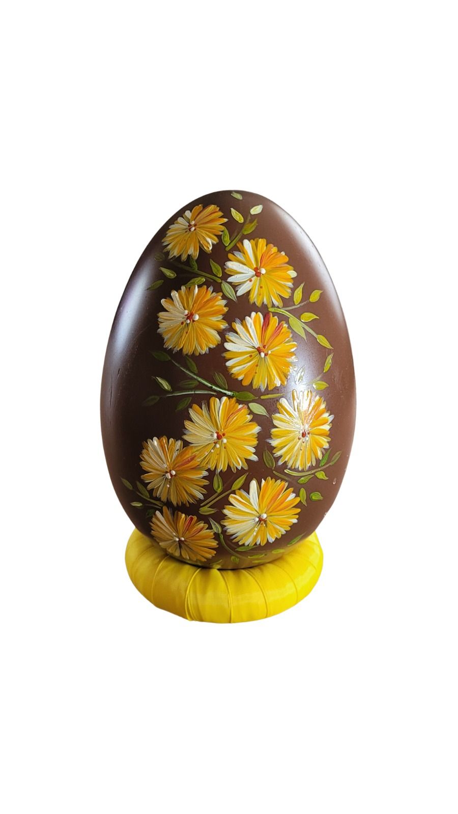 Jajo z belgijskiej czekolady ręcznie malowane. Masa 600g. Dostępne są dwie opcje: z czekolady mlecznej oraz z czekolady deserowej.