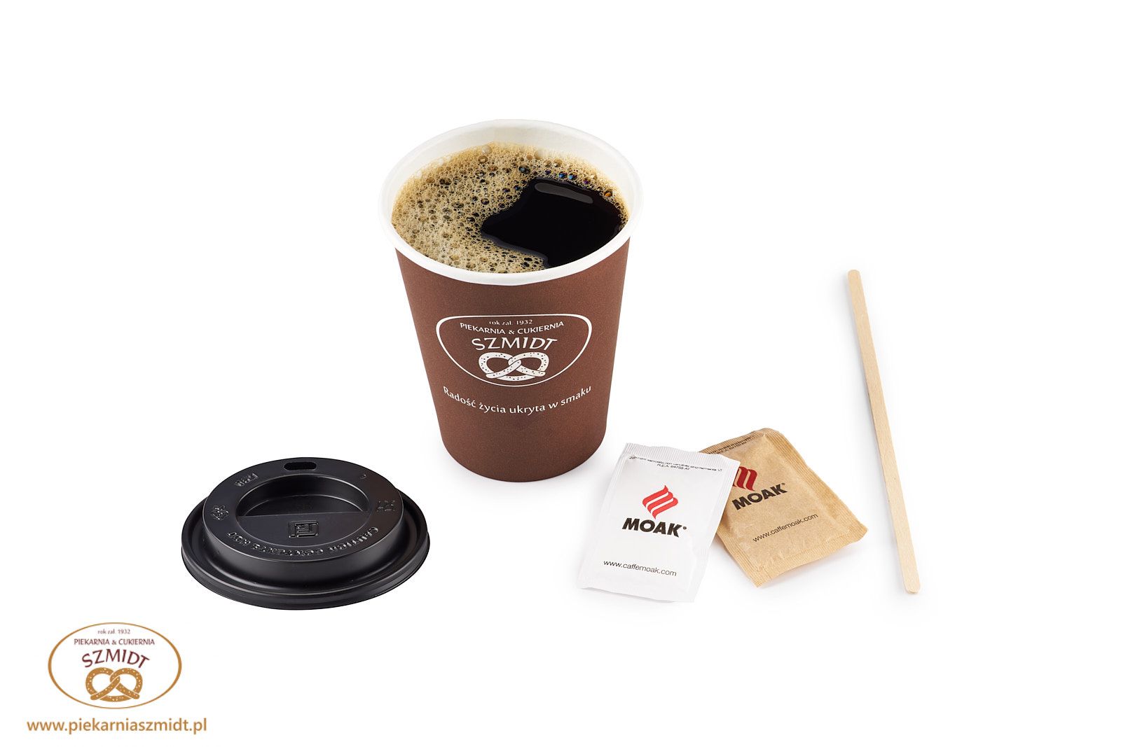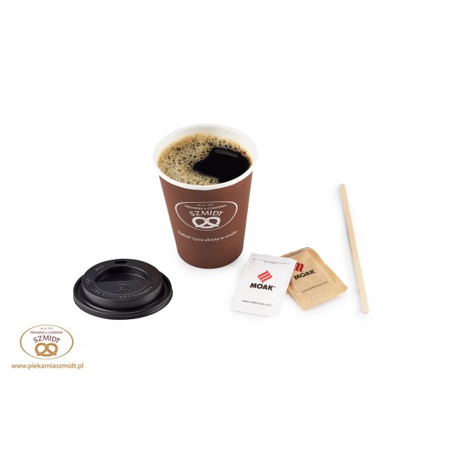 Kawa czarna duża 300 ml, cukier biały lub brązowy, mieszadełko.