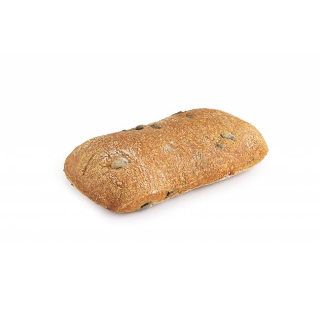 Włoska bułka pszenna z dodatkiem czarnych ciętych oliwek.